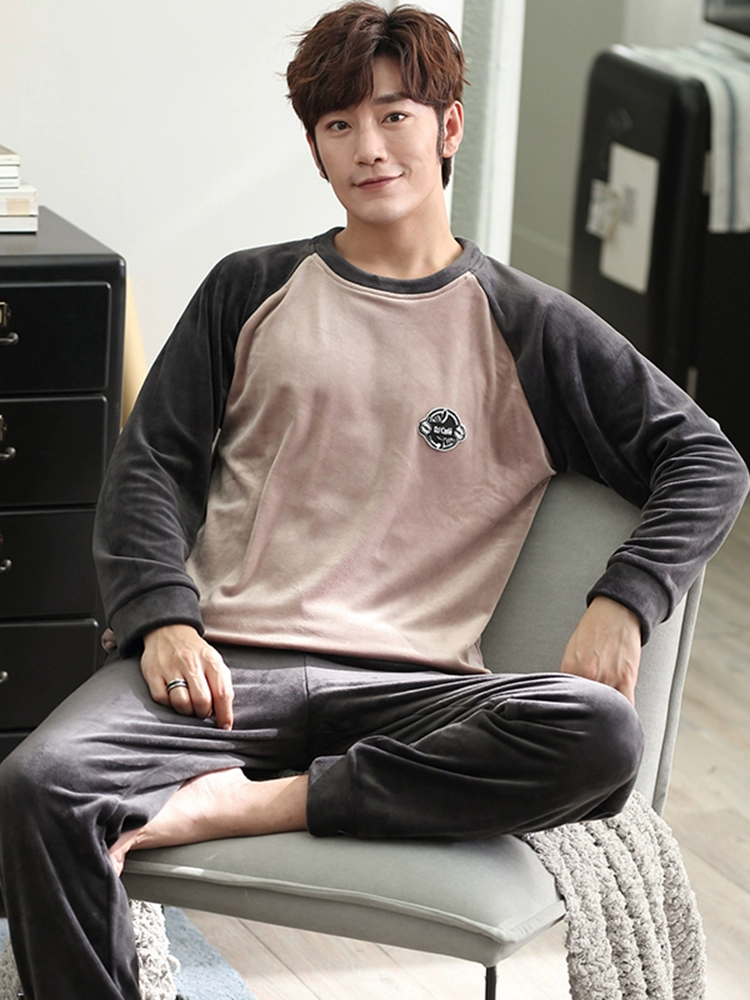 بيجامة مخملية مرجانية للرجال للخريف والشتاء بلوفر سميك مخملي دافئ للربيع والخريف ملابس منزلية مخملية جزيرة راقية مخملية رفيعة