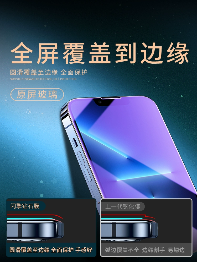 مناسب لهاتف Apple 13pro غشاء مقسى كامل الشاشة iphone13 فيلم الهاتف المحمول 5G مضاد للضوء الأزرق ipone13mini حماية ضد الانفجار ip13promax زجاج مضاد للسقوط 13max حافة شاملة