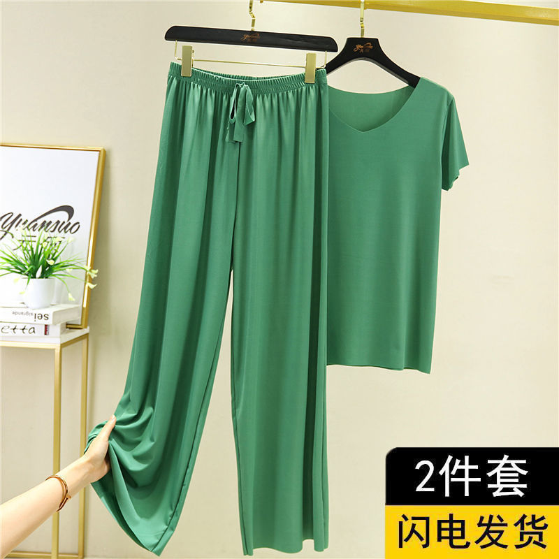 الصيف الحرير الجليد قطعتين دعوى رقيقة المرأة ملابس المنزل قصيرة الأكمام واسعة الساق السراويل أعلى فضفاضة عارضة واسعة الساق السراويل منامة