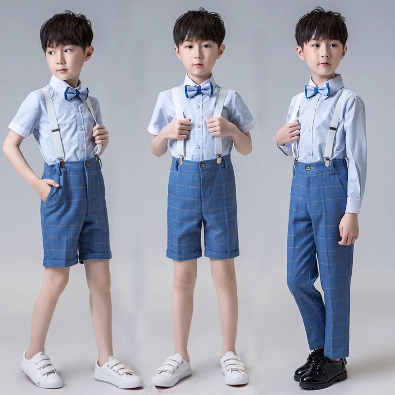 بدلة للأولاد سترة منقوشة للأطفال طقم مكون من ثلاث قطع لصيف 2021 فستان جديد للأداء على شكل زهرة بوي المضيف