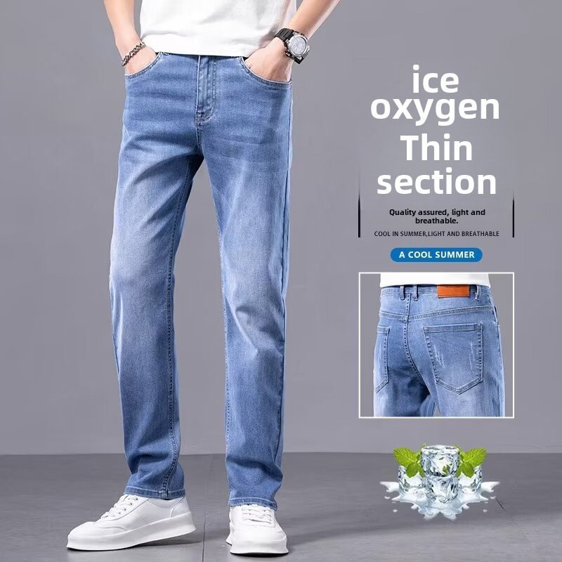 جينز رجالي ربيعي رفيع موديل 2024 فضفاض مستقيم عصري ماركة غير رسمية بقصة ضيقة سراويل طويلة رياضية للقدم مقاومة للاهتراء