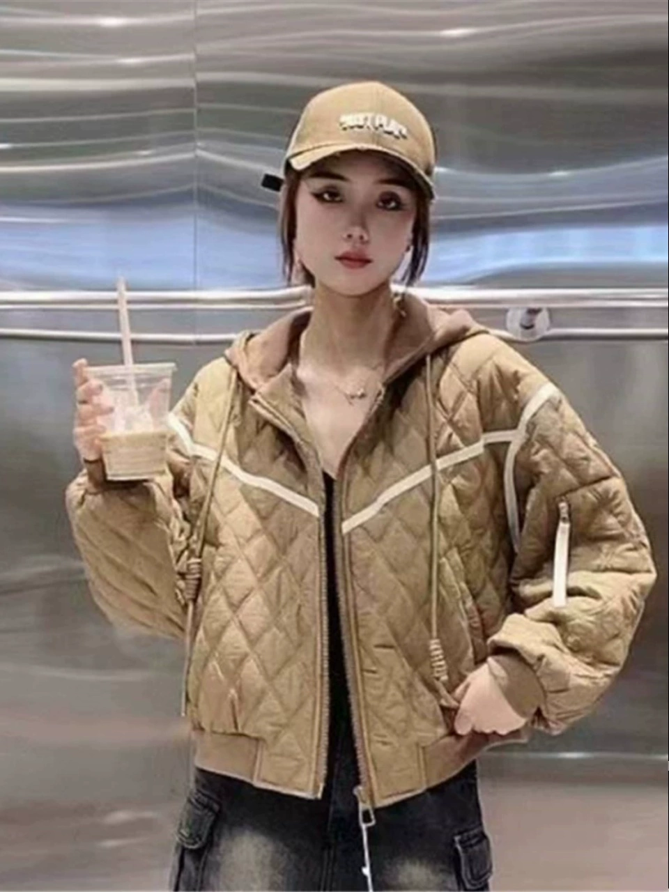 سترة نسائية رائجة للغاية للربيع والخريف معطف رقيق بغطاء للرأس مبطن بالصوف سميك على الطراز الكوري سترة علوية فضفاضة للطلاب