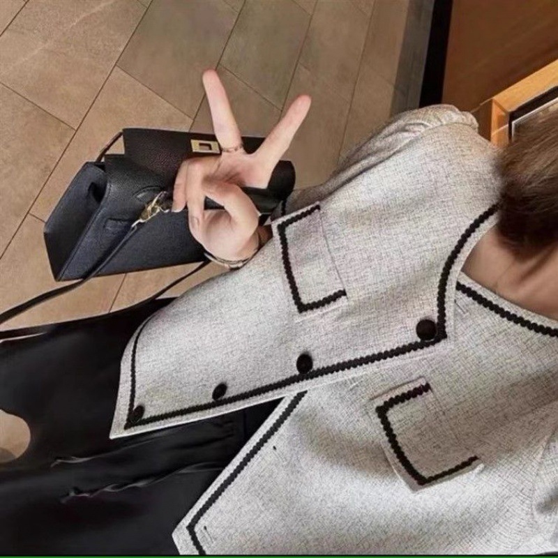 معطف نسائي جديد 2023 خفيف فاخر بياقة دائرية وأكمام قصيرة معطر وبلوزة فرنسية صغيرة معطرة