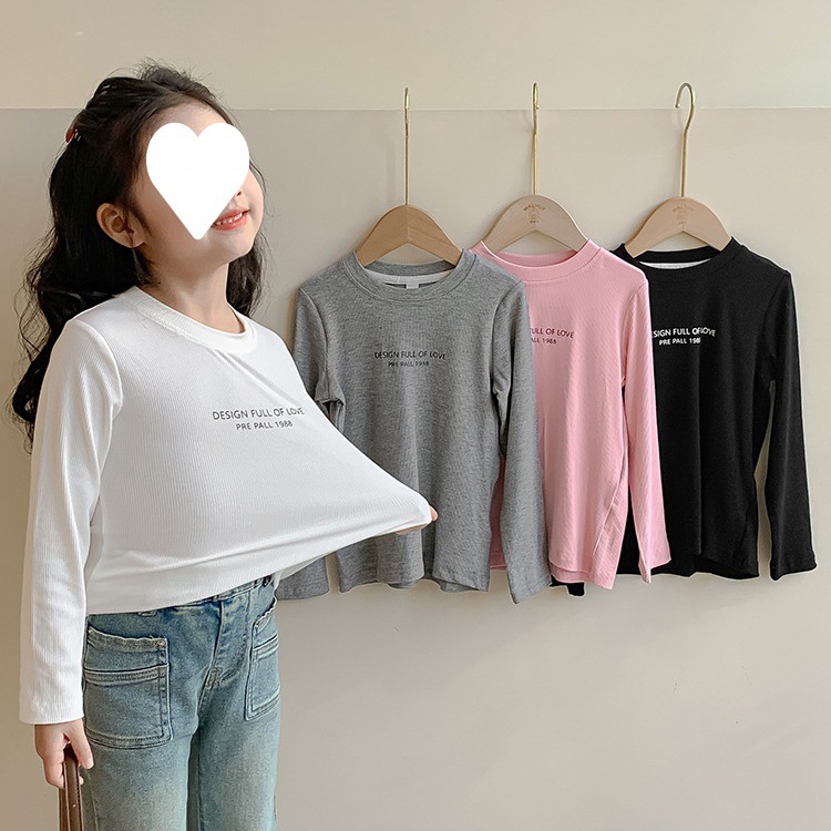 قميص الفتيات الأساسي للربيع والخريف 2024 تي شيرت جديد للأطفال بأكمام طويلة من القطن الخالص قميص أبيض أنيق للفتيات صيفي رقيق