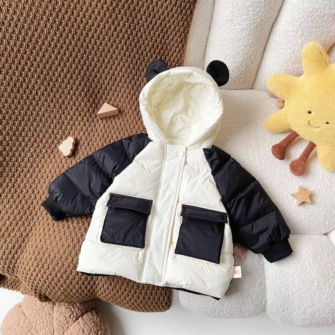 [متوفر] DW237255 سترة شتوية جديدة للأطفال بمعايير وطنية جديدة 90 سترة بيضاء بغطاء للرأس للأطفال