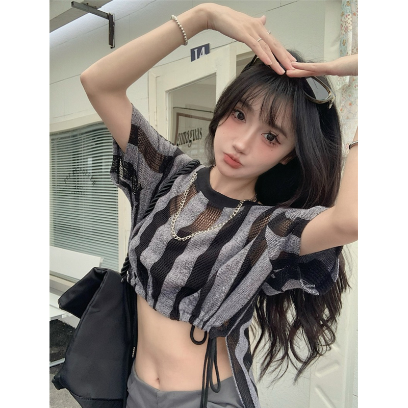 D24RP257 الأوروبية والأمريكية المرأة 2024 صيف موضة جديدة اللون مطبوعة صديرية دائرية جوفاء أكمام السراويل