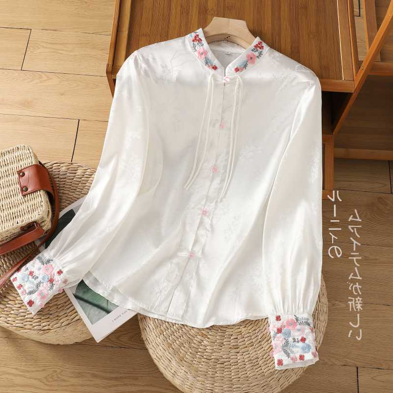 لقطة حقيقية قميص عتيق صيني مطرز جديد للسيدات 2024 ربيع جديد زن زر تانغ بدلة هانفو