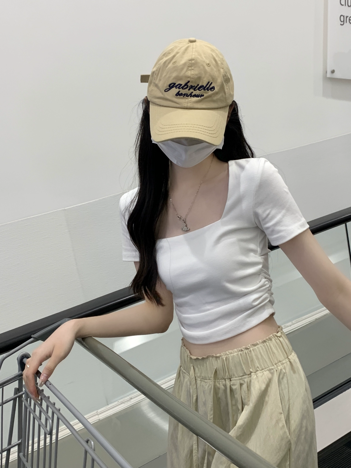 تي شيرت أبيض أنيق بأكمام قصيرة وخصر