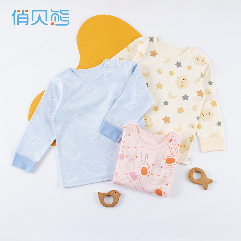 ملابس منزلية للربيع والخريف من القطن الخالص للأولاد والبنات، ملابس جديدة بأكمام طويلة كبيرة للأطفال برقبة مستديرة وقاعدة للخريف، ملابس داخلية حرارية