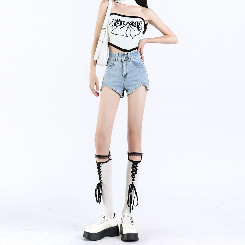 شورت جينز نحيل ذو خصر مرتفع باللون البني الأمريكي