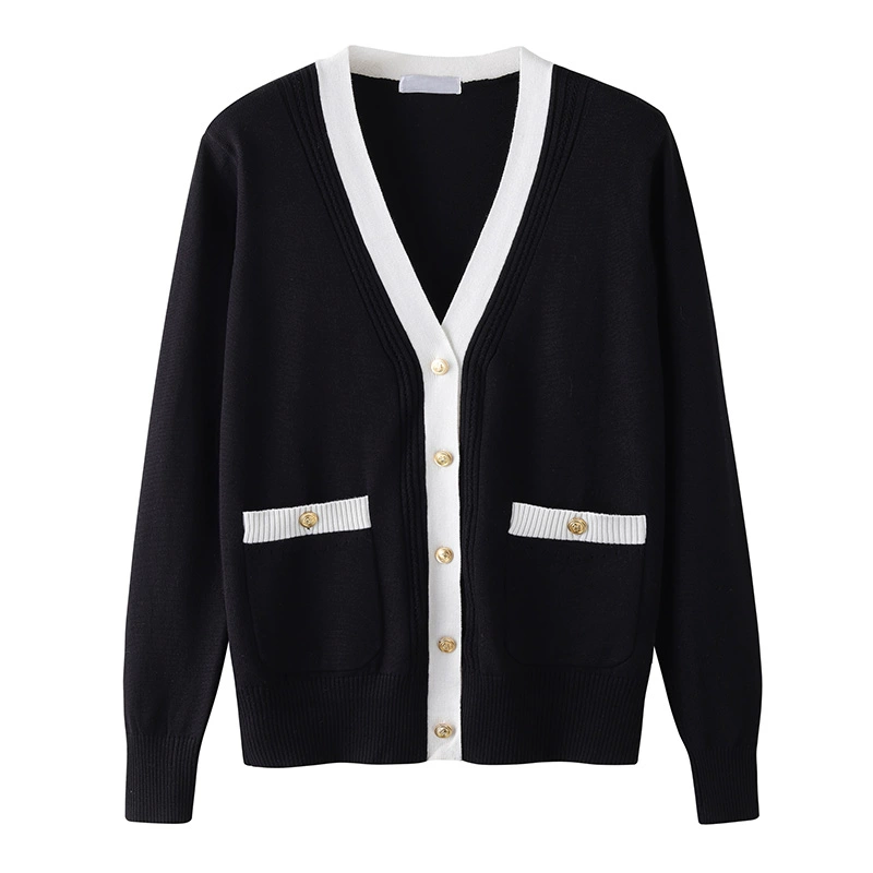 سترة علوية من القطن النحيف برقبة على شكل حرف V لارتداء ملابس الربيع والخريف لتقليل العمر