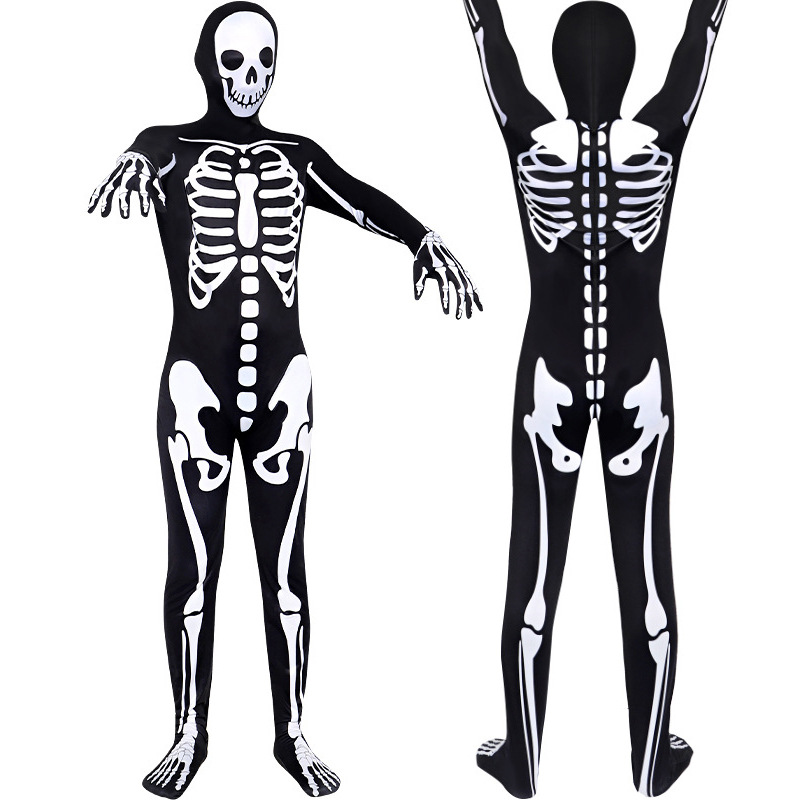 بدلة الهالوين الرهيبة على شكل جمجمة شبح على شكل عظمة، ملابس حفلات الهالوين، ملابس تنكرية، ملابس أداء المسرح