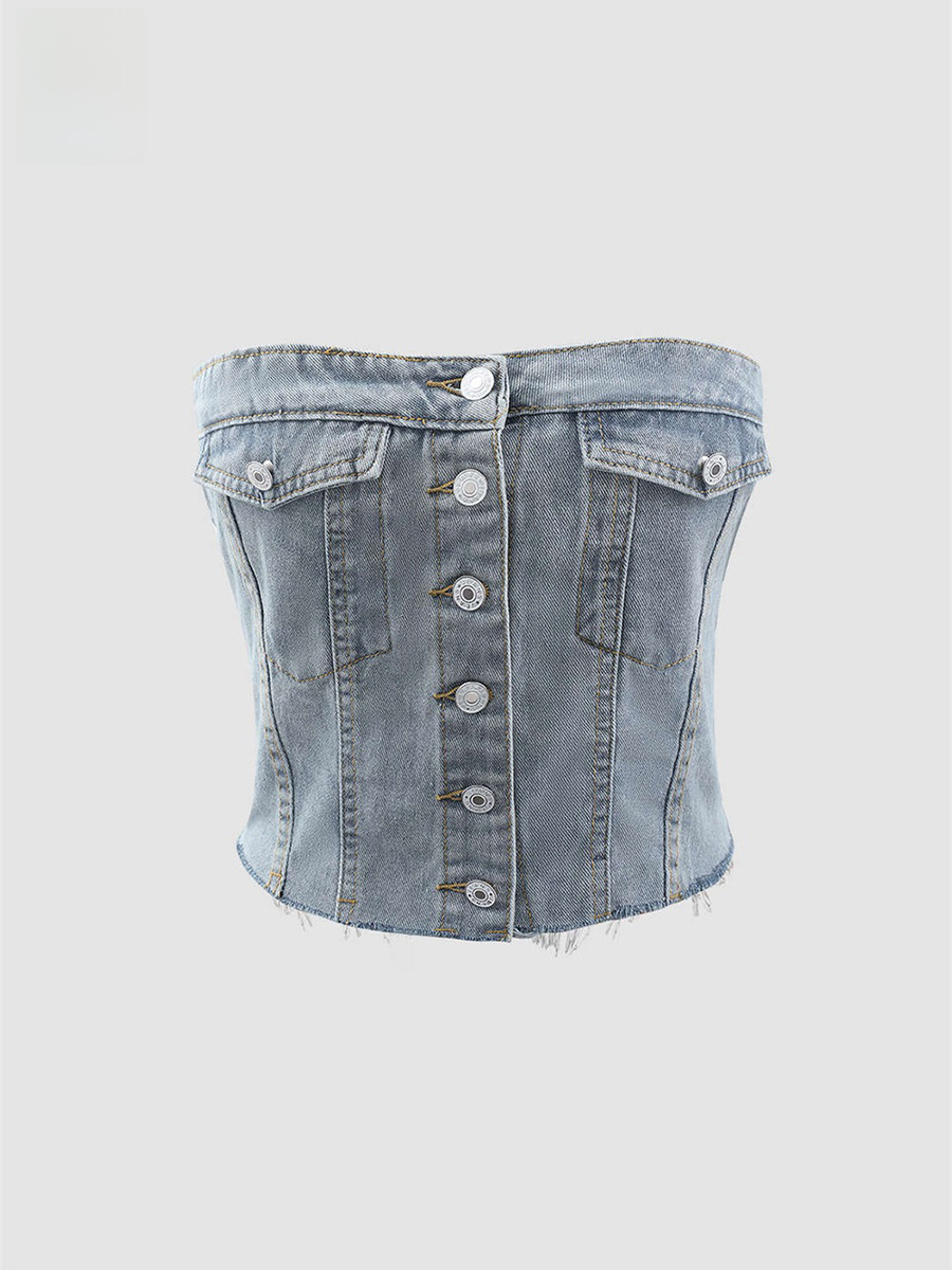 [بقعة] المرأة الصيف الجديدة الأوروبية والأمريكية الإضافية ملفوفة الصدر الدينيم مشد سترة قصيرة صدرية
