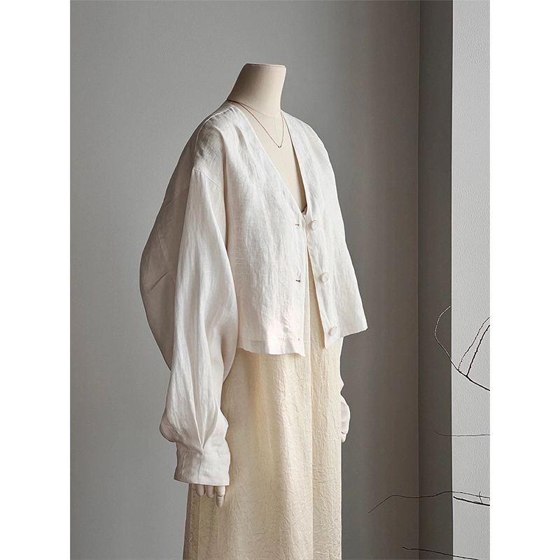سترة كسول بياقة على شكل حرف V وأكمام طويلة من الكتان عالي الجودة للحماية من الشمس