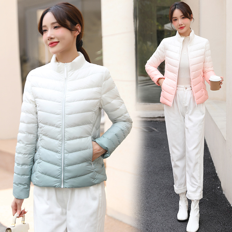 سترة نسائية خفيفة الوزن متدرجة قصيرة 2022 نمط كوري جديد عصري بطة بيضاء أسفل كل مباراة سليم صالح سترة طوق عمودي