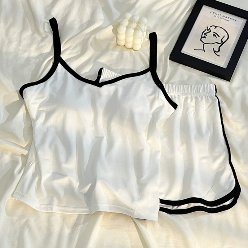 السيدات البيجامات المشروطة مع Camisole وسادة الصدر في صيف 2024 Sexy Simplicity ، مجموعة ملابس منزلية بلا أكمام بسيطة