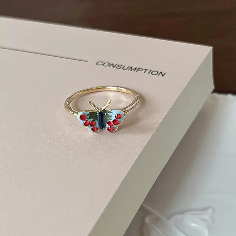خاتم فراشة رائع على شكل قطرة زجاجية للنساء موضة الحب زركونيا هندسية صغيرة S925 خاتم فضة مفتوح السبابة عصري