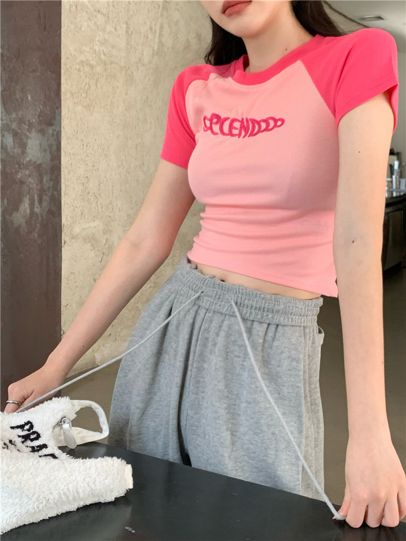تي شيرت نسائي بأكمام قصيرة لصيف 2023 نمط أوروبي جديد داخلي قصير بقصة ضيقة وضيق وحلو وحار توب بناتي ساخن نقي