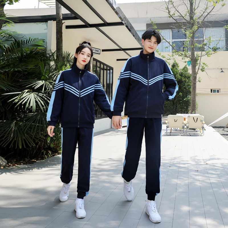 تسليم قطعة واحدة 2023 ملابس زوجين لقطة حقيقية بدلة رياضية للصغار والكبار في المدرسة الثانوية ثلاث قطع زي مدرسي موحد وسراويل