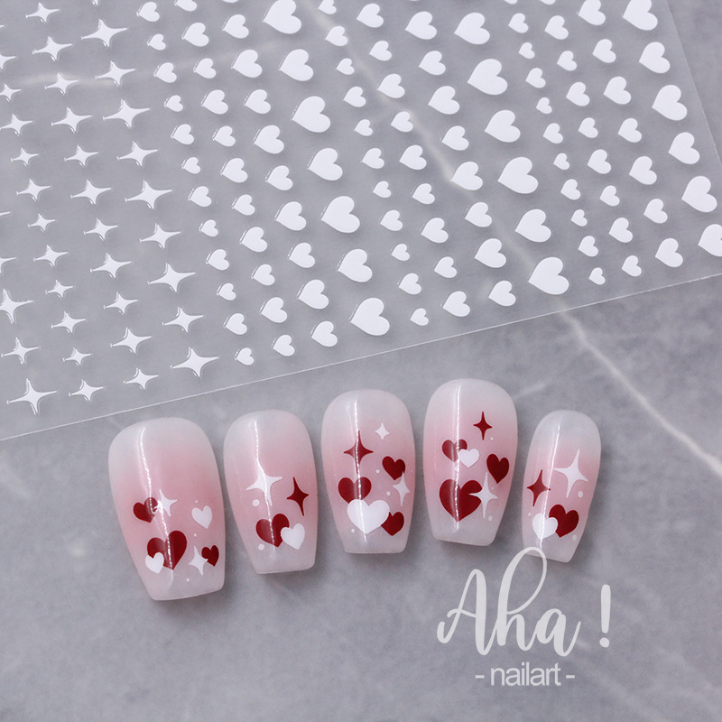 ملصق لاصق للأظافر مجوف بلون القلب البرنز الفضي لتزيين الأظافر بأربعة نجوم رفيعة للغاية مقاومة للماء