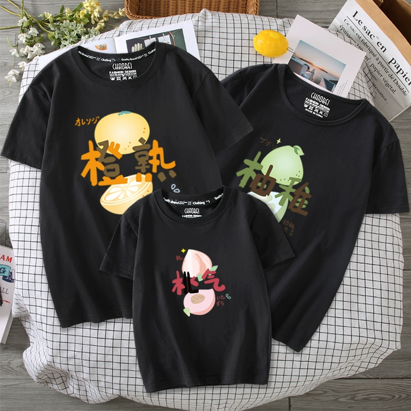 تي شيرت كارتوني نصف كم على الطراز الكوري لملابس الوالدين والطفل