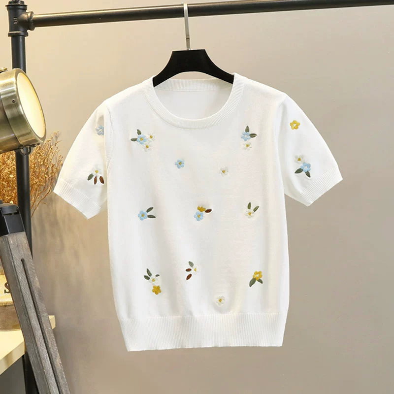 الصيف الجليدي الحرير القصير t -sleeved t -shirt roundlin