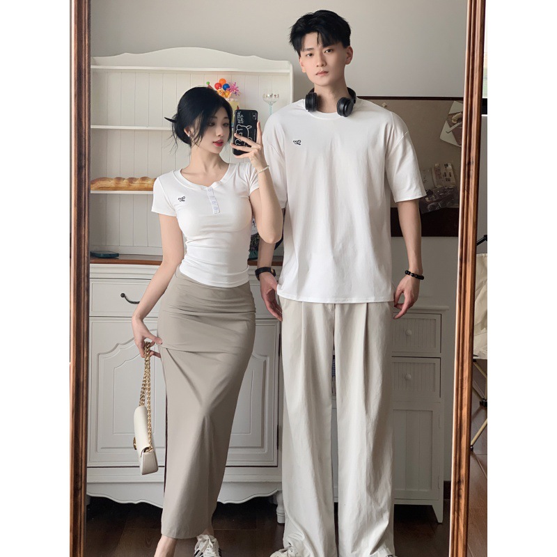 2024 صيف جديد للرجال والنساء قصيرة الأكمام التطريز تصميم تحسس فستان زوجين بدلة قصيرة الأكمام