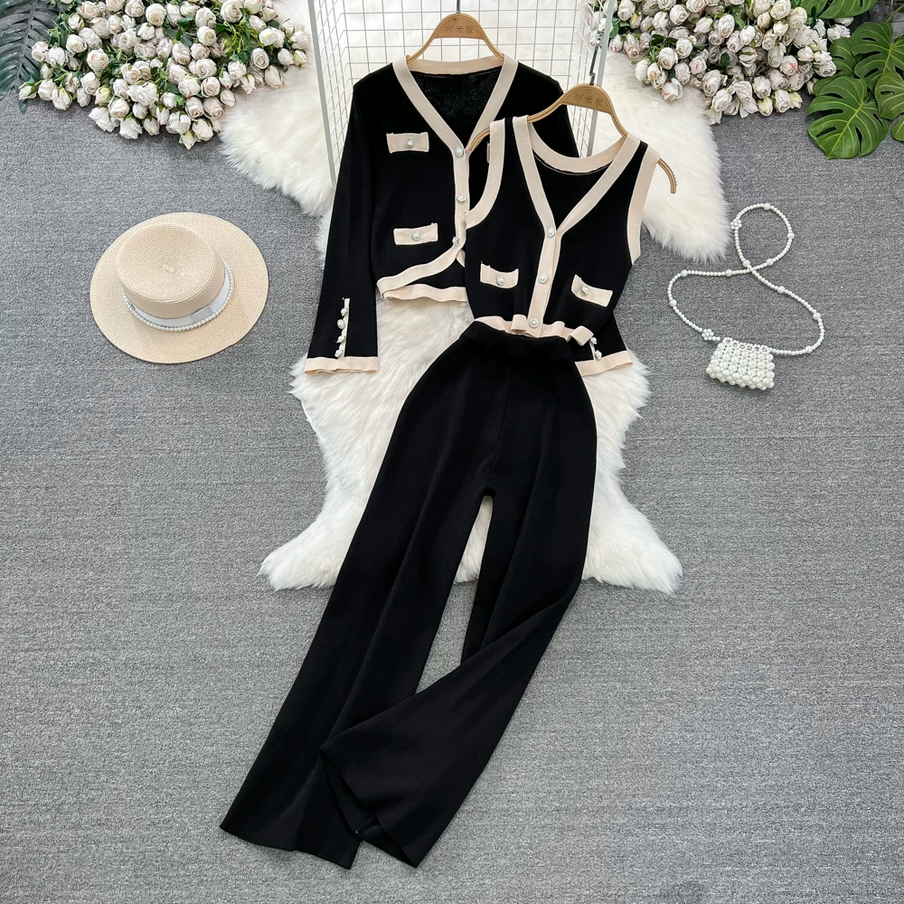 مجموعة أزياء الخريف والشتاء على تباين طويل -ف -صافد ، سترة واحدة محبوكة عالي -سروال عريض على عريض على التوالي