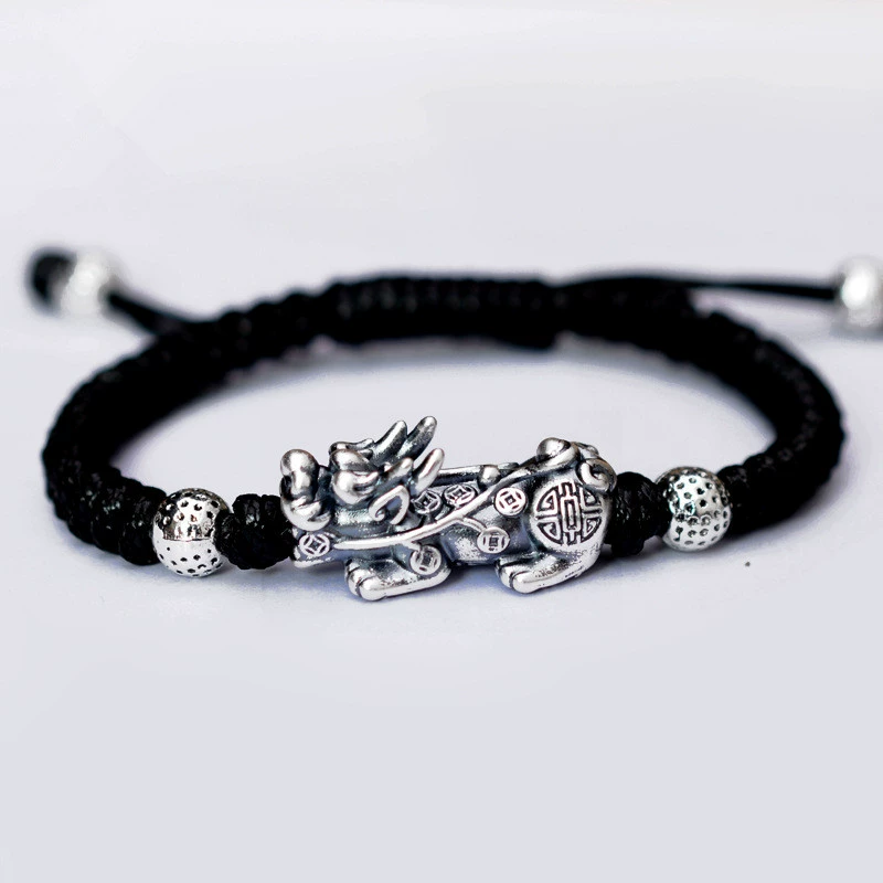 سوار زوجين Pixiu لعيد الحب 520 للرجال والنساء 925 فضي مضفر حبل أحمر وأسود هدية عصرية بسيطة