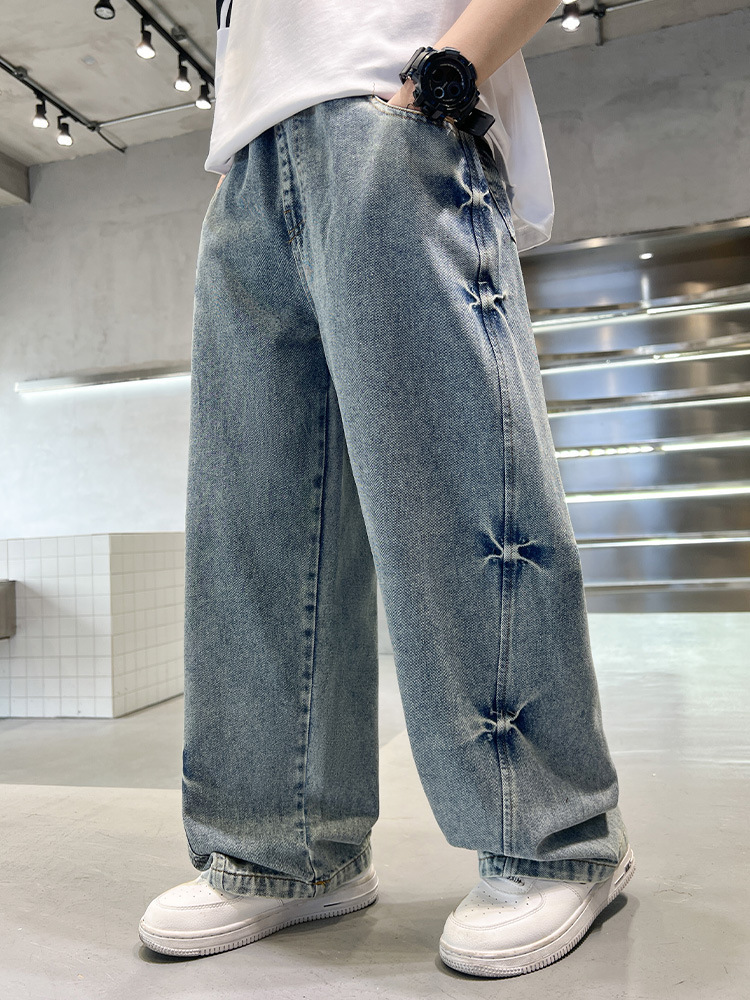 ملابس أطفال بنين جينز لربيع وصيف 2024 وصل حديثًا بنطال كبير للأطفال بنطال ذو قصة أرجل واسعة بنطال غير رسمي بناطيل ماركة عصرية