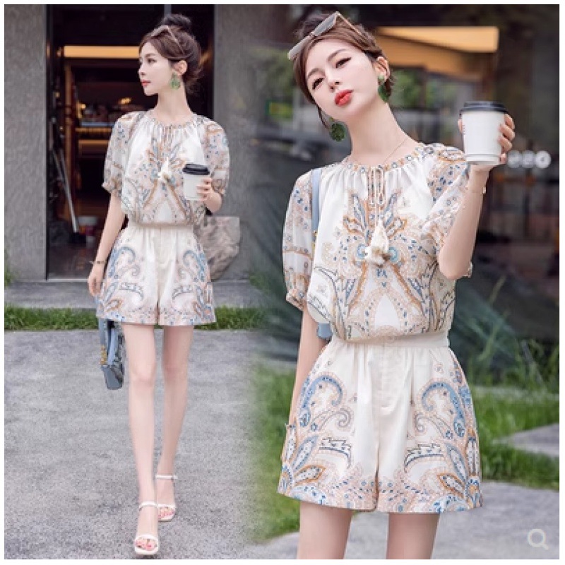 بدلة تنحيف الدهون الطفيفة الراقية للنساء 2024 شورت ايوسل مطبوع جديد لصيف 2024 طقم مكون من قطعتين