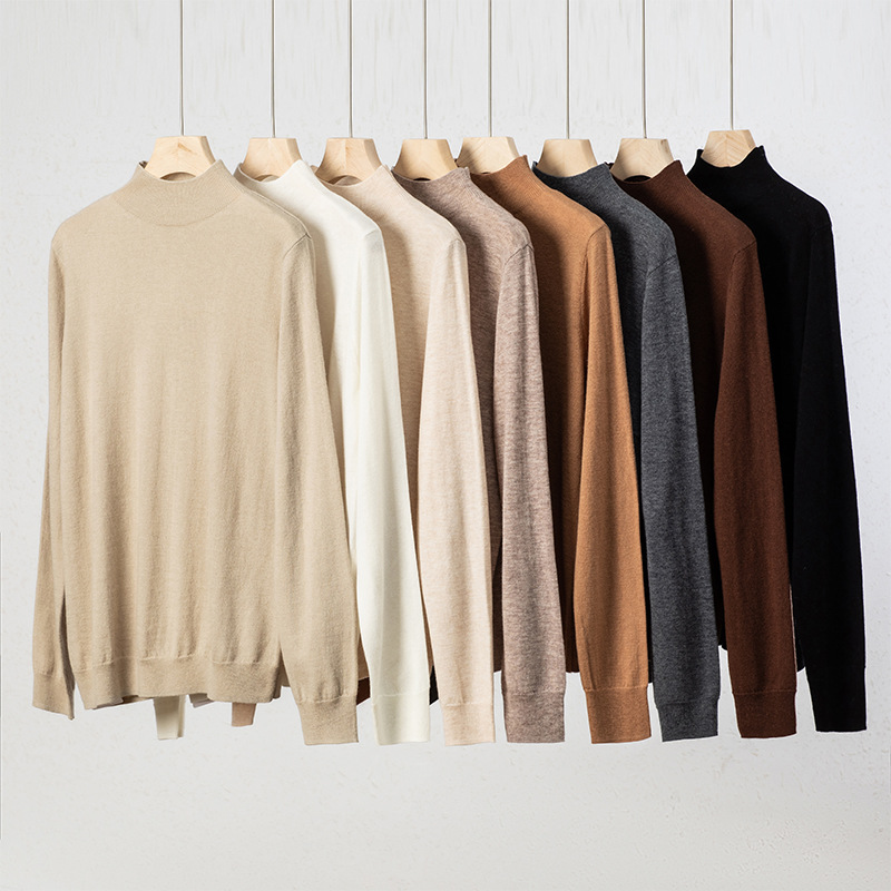 48 سترة صوفية نقية 100 ذات ياقة شبه عالية للنساء لخريف وشتاء سترة داخلية جديدة محبوكة بأكمام طويلة ورقيقة لفصل الشتاء