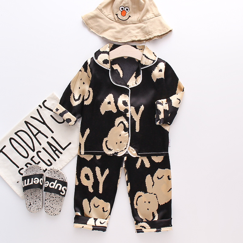 CA76 ملابس منزلية جديدة للربيع والخريف للأطفال وجبات مريحة بيجامة دب أسود واحدة الصدر مكونة من قطعتين على الطراز الكوري نمط عصري