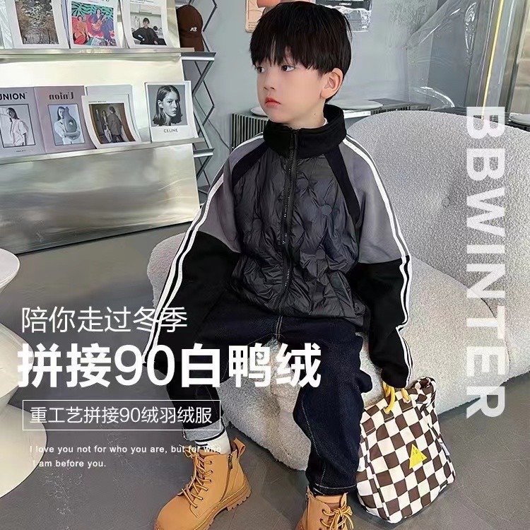 زي مدرسي للأطفال قطعة أثرية 2023 للأولاد شتاء جديد متوسط وكبير ملابس أطفال كورية 0036 سترة سفلية مطابقة الألوان