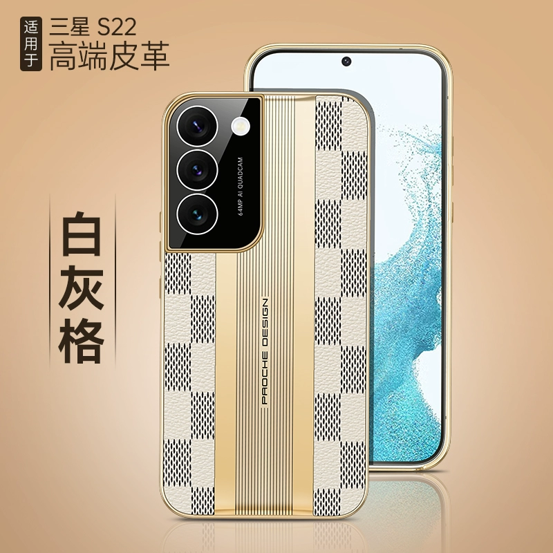 مناسبة لـ Samsung S22ULTRA الهاتف المحمول جلود جلود S22+ثواني Supercar Grid Pattern S22Pro Ultra -thin Electroplating Edge Hard S22Plus Sleeve Sleeve Consulal All -inclusive Big Tide Fashion شخصية شخصية شخصية