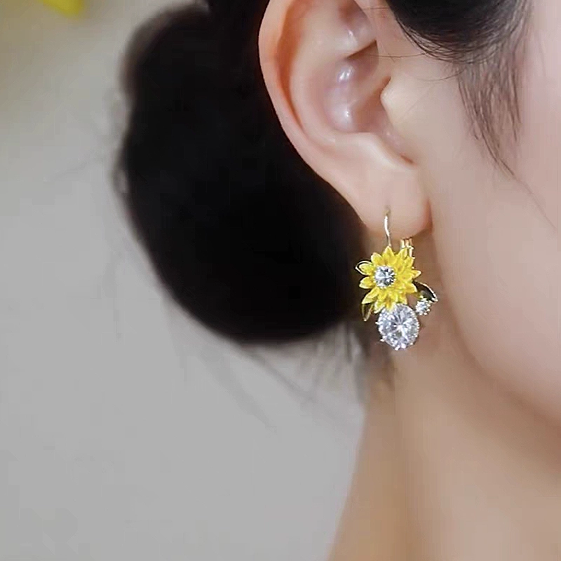 زهرة عباد الشمس أقراط كريستال الزركون الأذن السنانير المؤنث الأقراط الطويلة الإنترنت المشاهير شعبية ضوء الأقراط الفاخرة الربيع والصيف