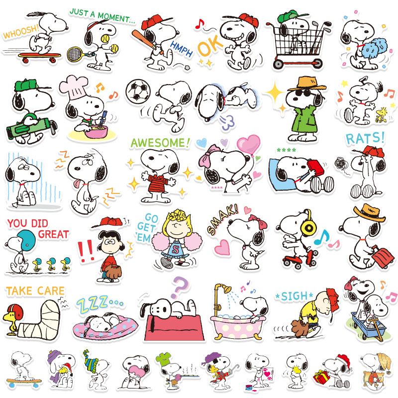 40 ملصقًا كرتونيًا سنوبي مع شخصية لطيفة، ملصقات الأمتعة، ملصقات خوذة الدراجة النارية على شكل جيتار التزلج