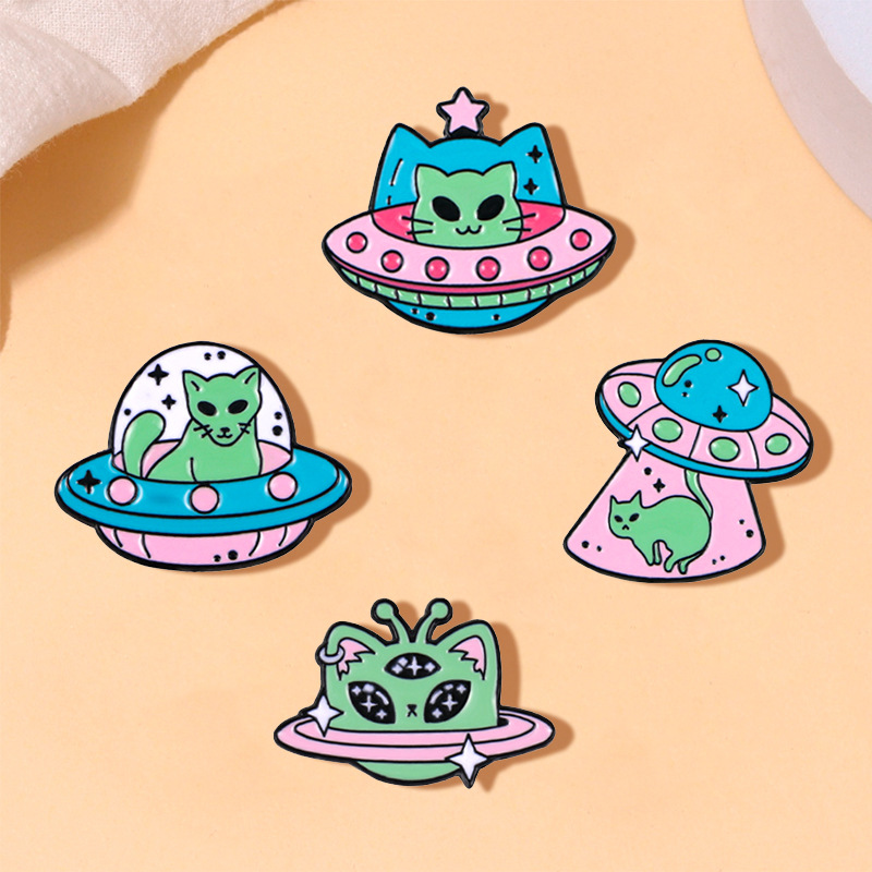 الأصلي الكرتون الفضاء القط الغريبة الملابس الإبداعية كل مباراة شارة معدنية يقطر النفط شوكة دبوس بروش