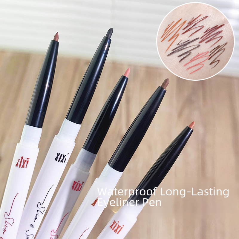قلم غراء تحديد العيون النحيف من Xixi، قلم غراء فائق النعومة مقاوم للماء وغير ملطخ باللون الأبيض والبني الزائف كحل عادي للمبتدئين