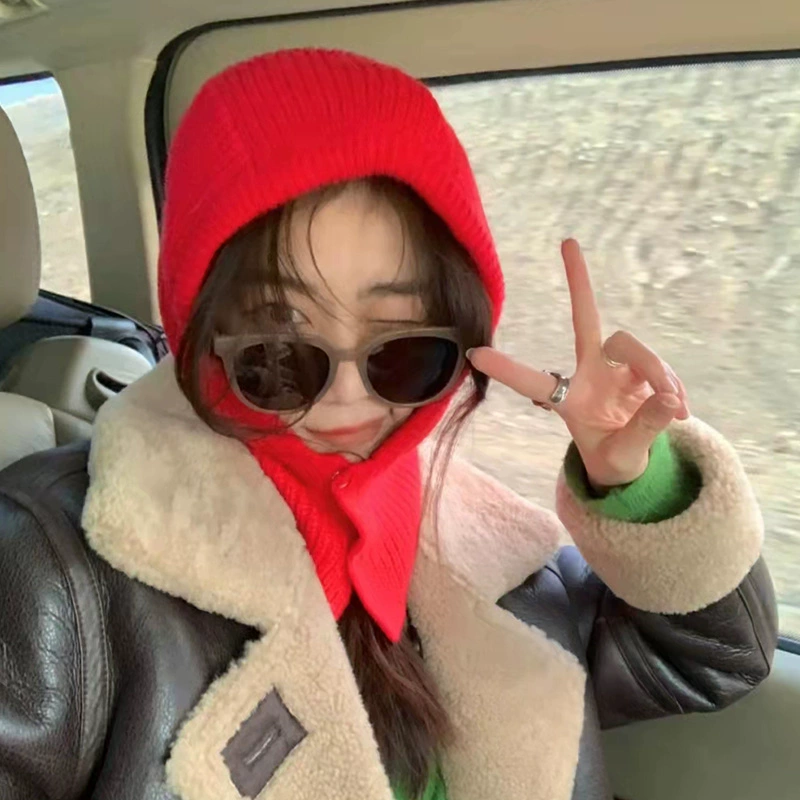 قبعة صوفية بالاكلافا للمشاهير على الإنترنت للنساء في الشتاء باوتو قبعة ركوب حمراء صغيرة دافئة قطعة واحدة قبعة صوفية للرجال عصرية