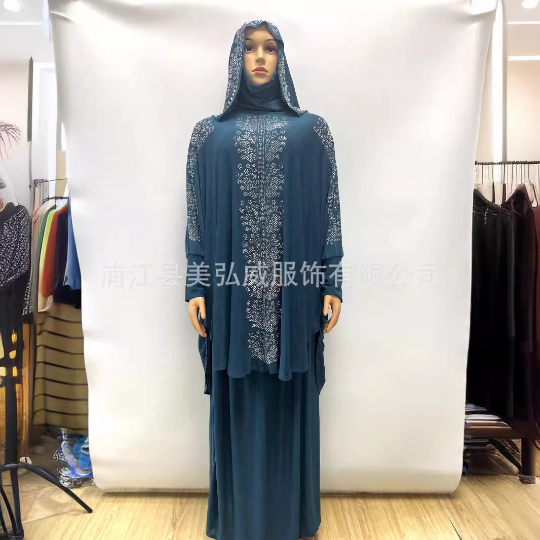 متوفر حجم كبير النمط الأفريقي نسيج الحرير الجليدي حجر الراين القبعات المزدوجة فضفاضة تناسب حفل فستان قطعتين ثوب نسائي