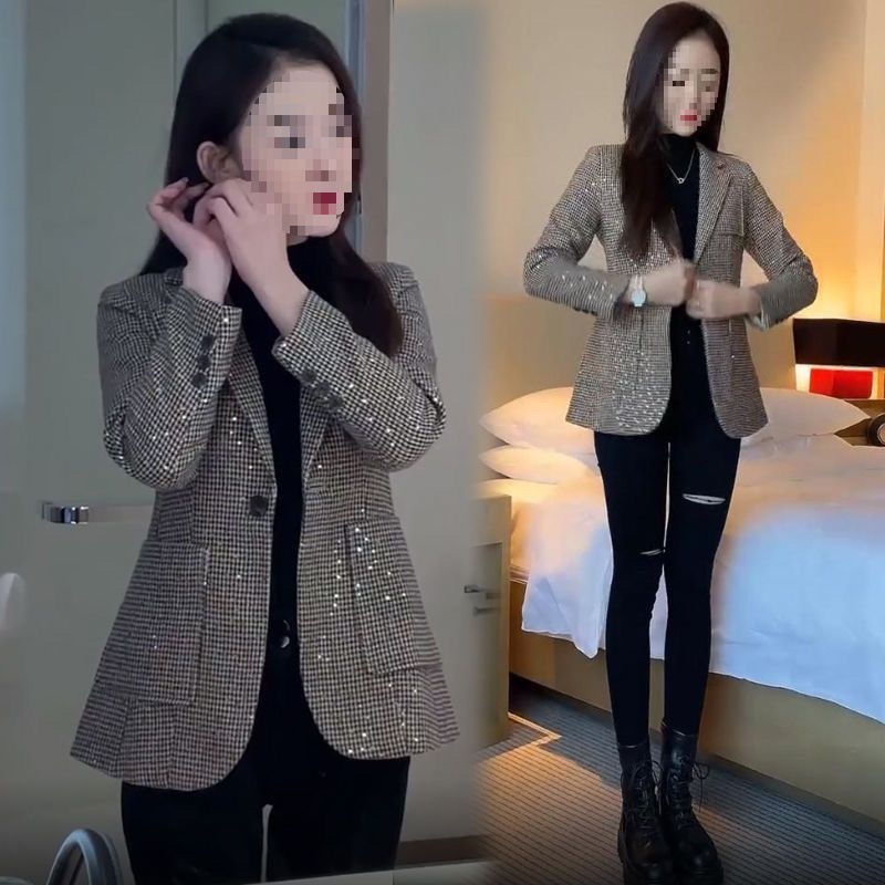 الخريف المرأة الأزياء الكورية نمط دعوى الترتر houndstooth دعوى الخريف والشتاء جديد عارضة النمط الغربي معطف آلهة نمط