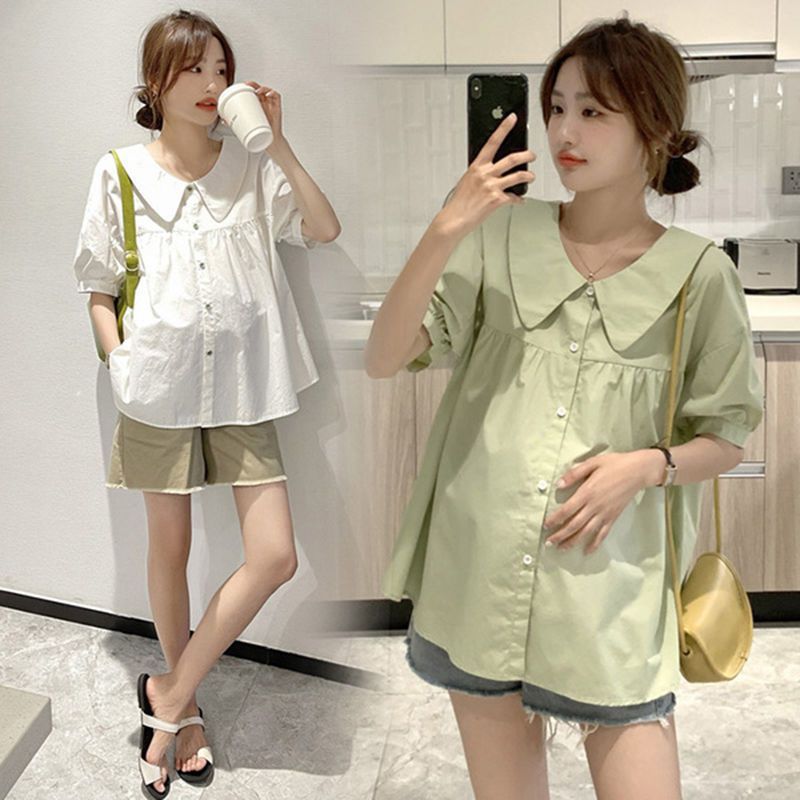 بدلة المرأة الحامل الصيف رقيقة النمط الغربي المرأة الحامل أعلى الصيف قصيرة الأكمام دمية قميص البطن تغطي السراويل فضفاضة قطعتين مجموعة