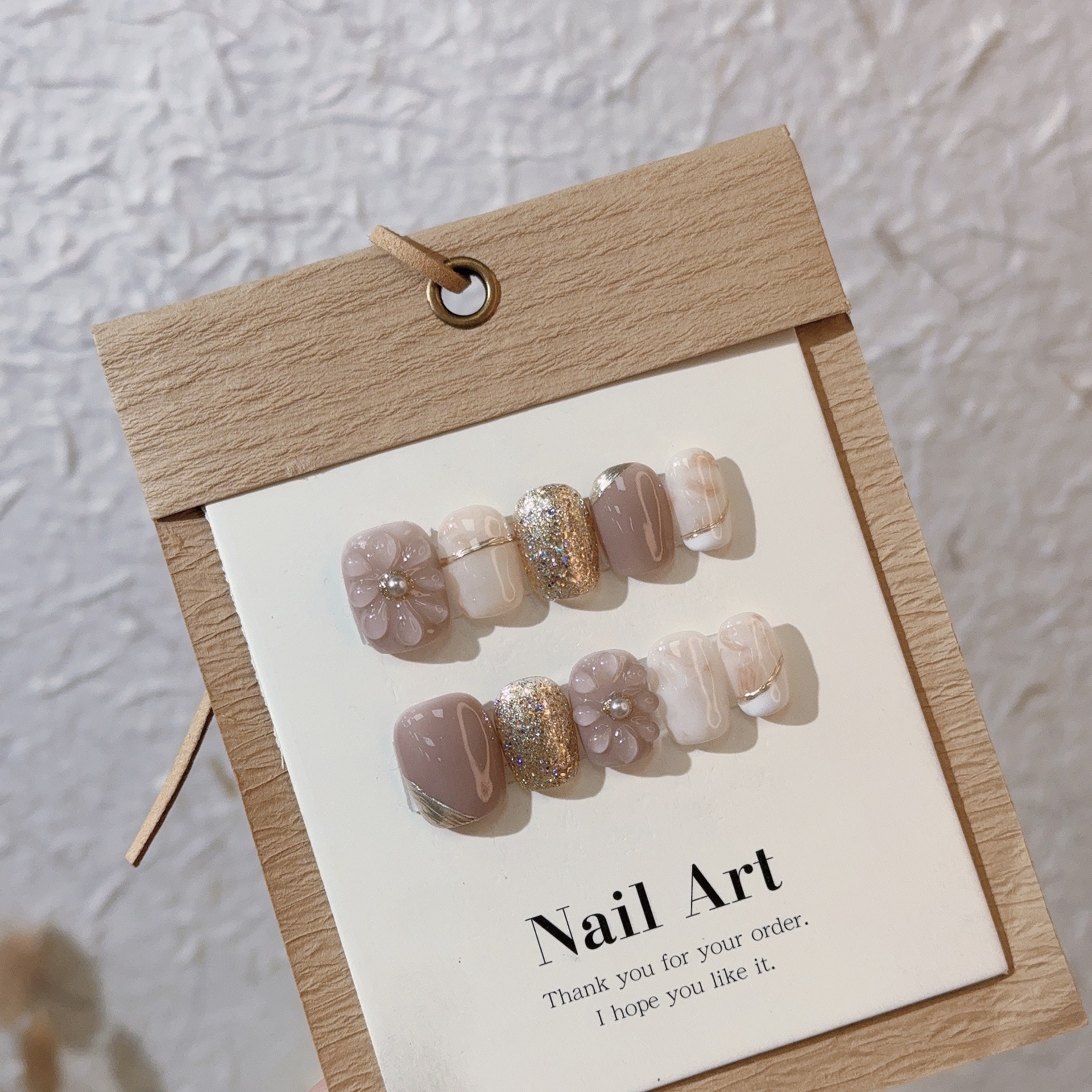 [مانيكير زهرة كبيرة] قرصة أظافر يتم ارتداؤها يدويًا وخرز بلاستيكي صغير على شكل زهرة أرجوانية وأبيض لطيف ملصقات أظافر مزيفة للطلاب