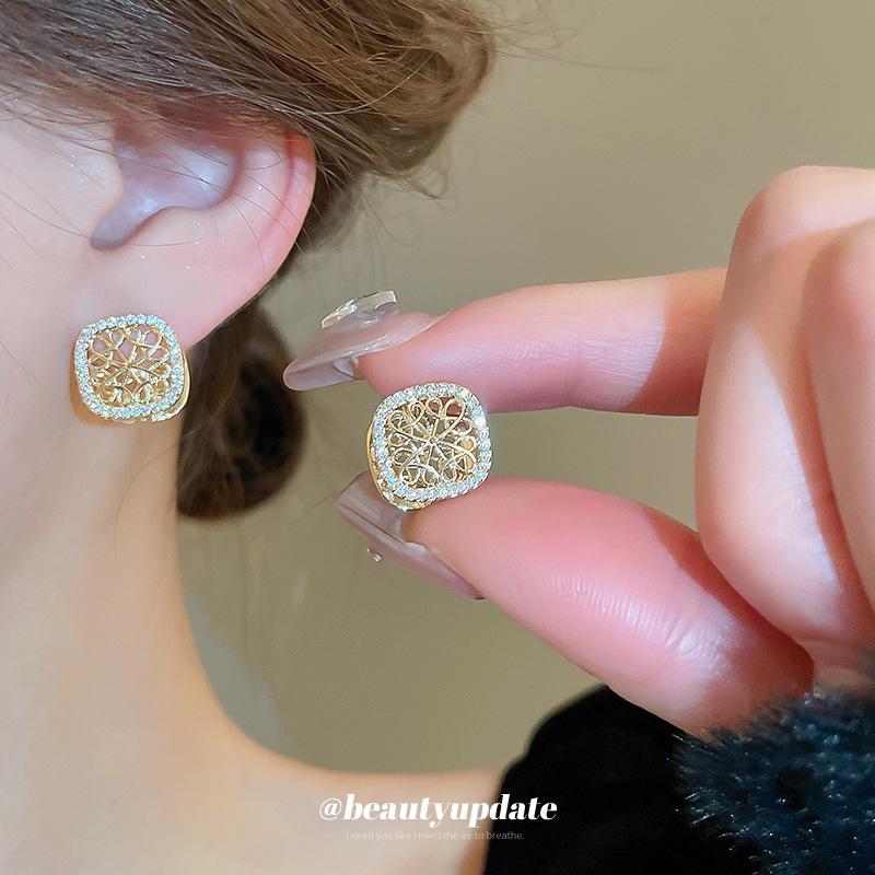 أقراط أذن مربعة الشكل مجوفة من الزركون المطلي بالذهب الحقيقي، تصميم فاخر، أقراط شخصية، أقراط عالية الجودة