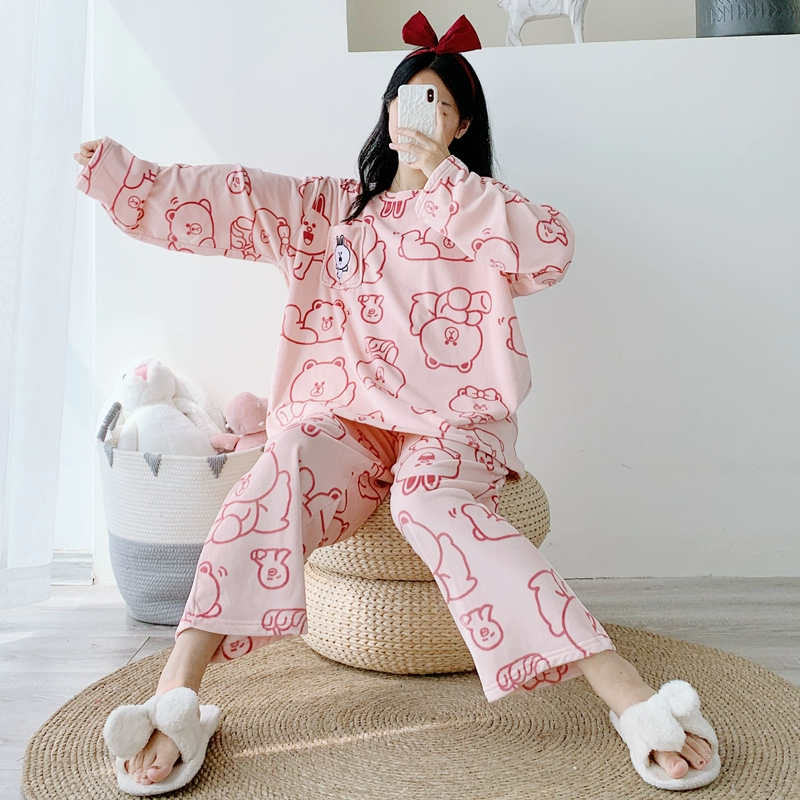 جزيرة المخملية بالإضافة إلى الدهون بالإضافة إلى حجم زوجين الدب بيجامة فضفاضة من قطعتين مجموعة الخريف والشتاء 200 جنيه بالإضافة إلى ملابس المنزل المخملية للرجال والنساء