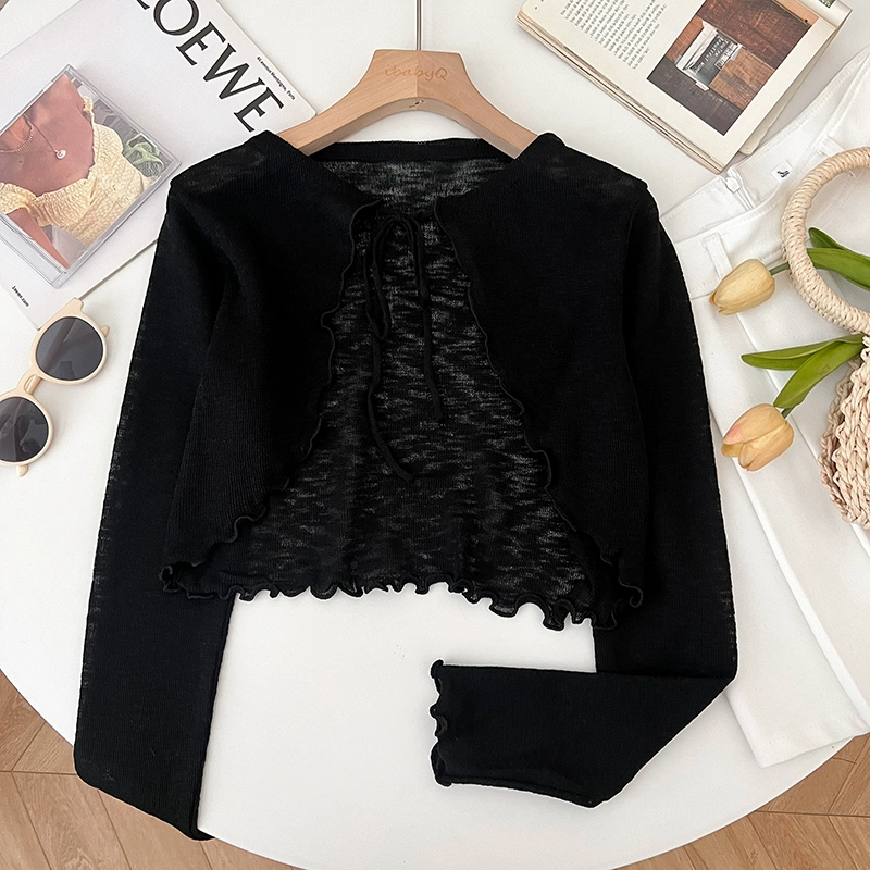 سترة جميلة ومتعددة الاستخدامات برباط على شكل فيونكة فطرية رفيعة بأكمام طويلة وقميص حماية من الشمس سترة علوية للنساء