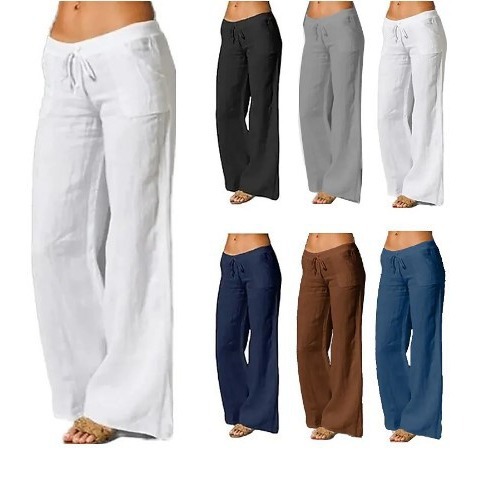 بقعة 2023 جديد انفجارات أمازون المرأة منتصف الخصر بنطال ذو قصة أرجل واسعة كبير القدم جيب القطن والكتان سراويل تقليدية
