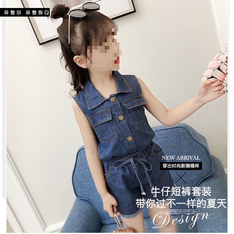 بدلة بناتي 2021 صيفي جديد على الطراز الغربي موضة كورية للأطفال شورت دينم عصري قطعتين بدلة عصرية