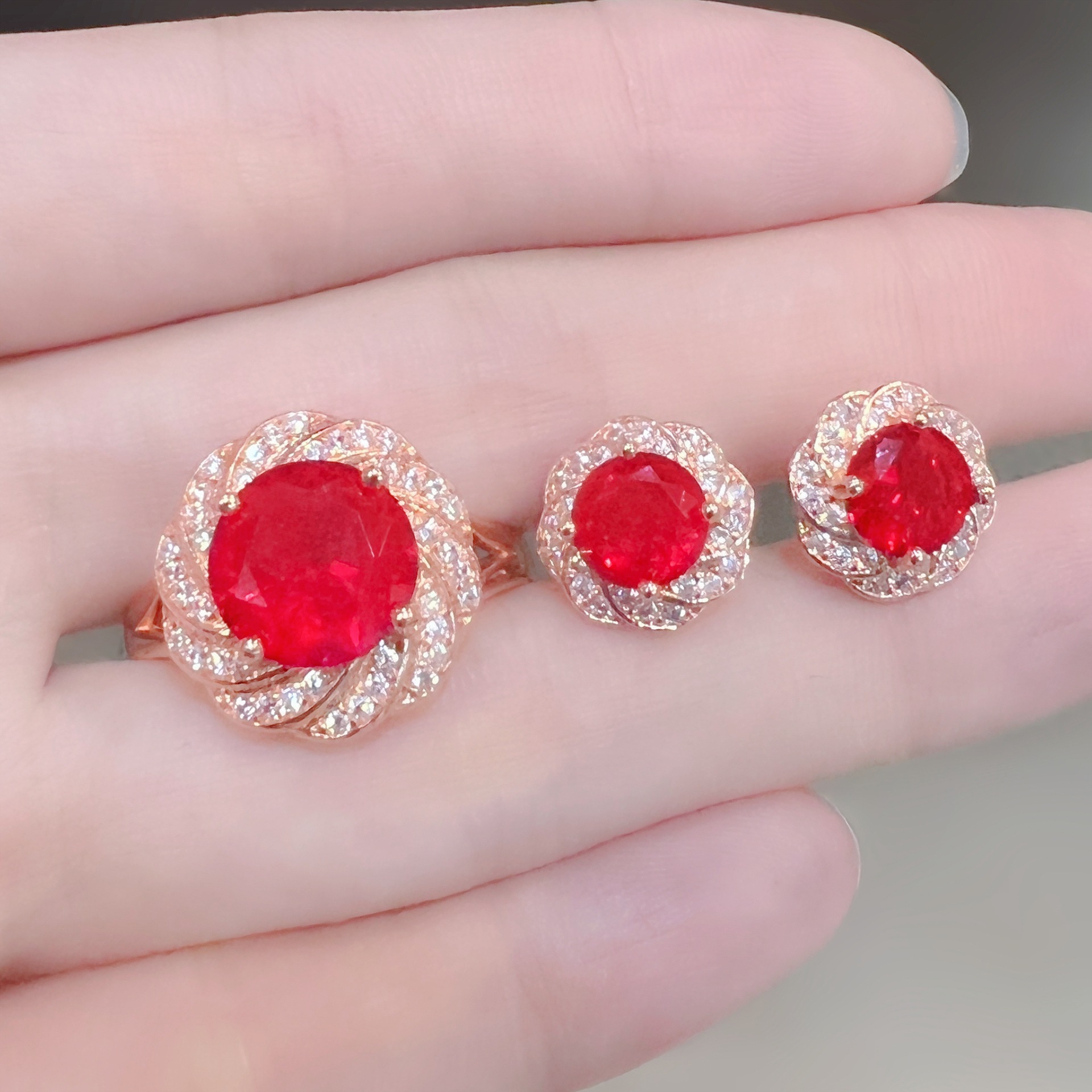 هزة لهجة الساخن الموضوع زهرة خاتم الأقراط روبي التورمالين اللون الكنز تتفتح الزهور خاتم الزفاف الأقراط
